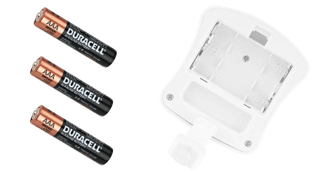 устройство работает на 3 батарейках ААА