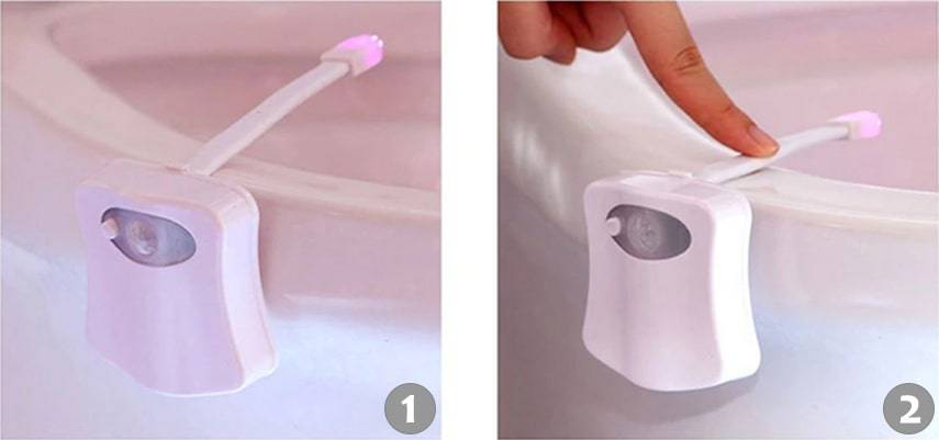 Подсветка оснащена датчиком движения. Когда Вы входите в туалет, светильник включается, а когда выходите – выключается. Вам не придется искать в темноте выключатель, умное устройство сделает все за Вас.
